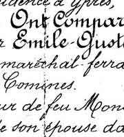 Op 18 november 1893 verschijnen Emile Vanbiervliet en Elise De Jonckheere in Ieper voor notaris D'huvettere. Daar tekenen ze hun huwelijkscontract. (Merk op dat het document opgesteld werd door de notaris, vandaar dat de familienaam van Miel Smet in twee woorden geschreven is).